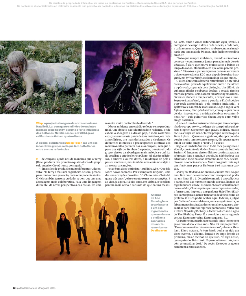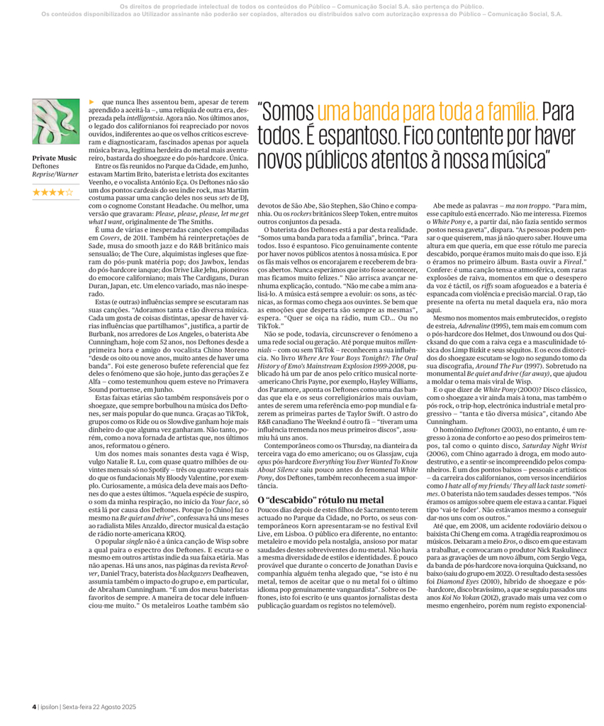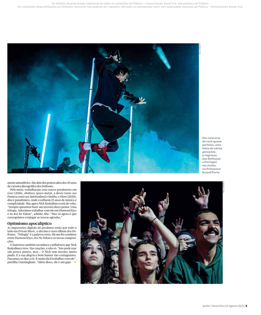 Abe Cunningham dos Deftones em discurso directo no Ípsilon da passada Sexta-Feira. A entrevista é da autoria de Luís Filipe Rodrigues. Leiam aqui (se conseguirem) ou nos prints abaixo.